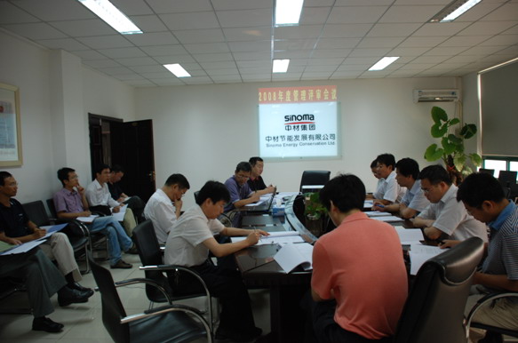 2008年9月18日上午,中材節能發展有限公司召開管理評審會議,會議由總經理何新平主持,董事長張奇、副總經理楊德廣、葛立武、副總工程師董蘭起、各部門負責人及部分內審員參加會議。