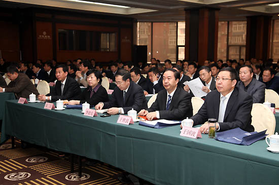 集團(tuán)董事長譚仲明,黨委書記于世良,總經(jīng)理劉志江,副總經(jīng)理張海、李建倫、于國波,黨委副書記、紀(jì)委書記張江,集團(tuán)黨委常委、中材股份總裁李新華,中材股份副總裁余明清、顧超、蘇逵、金樂永、王廣林、王偉、劉燕等出席了會議。