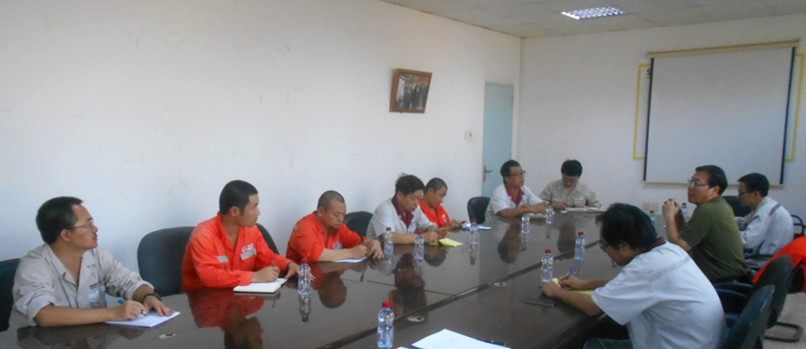 胡也明抵達(dá)沙特后,第一時(shí)間趕到沙特YCC項(xiàng)目部,在余熱發(fā)電事業(yè)部副總經(jīng)理王品的陪同下了解現(xiàn)場施工進(jìn)度、安全管理和員工的生活狀況。在對施工現(xiàn)場安全檢查過程中,胡也明向工人們詢問了空冷島的安裝過程,并對安全防護(hù)措施做了詳細(xì)檢查。在項(xiàng)目部專題會上,胡也明指出,現(xiàn)場要把安全放在第一位,要加大現(xiàn)場的安全監(jiān)管力度,杜絕工人的違章違規(guī)行為,對發(fā)現(xiàn)的安全隱患要立即整改。期間,胡也明還參加了由YCC業(yè)主和分包方共同參加的項(xiàng)目協(xié)調(diào)會并講話。